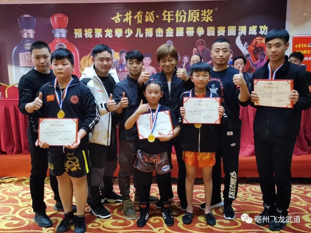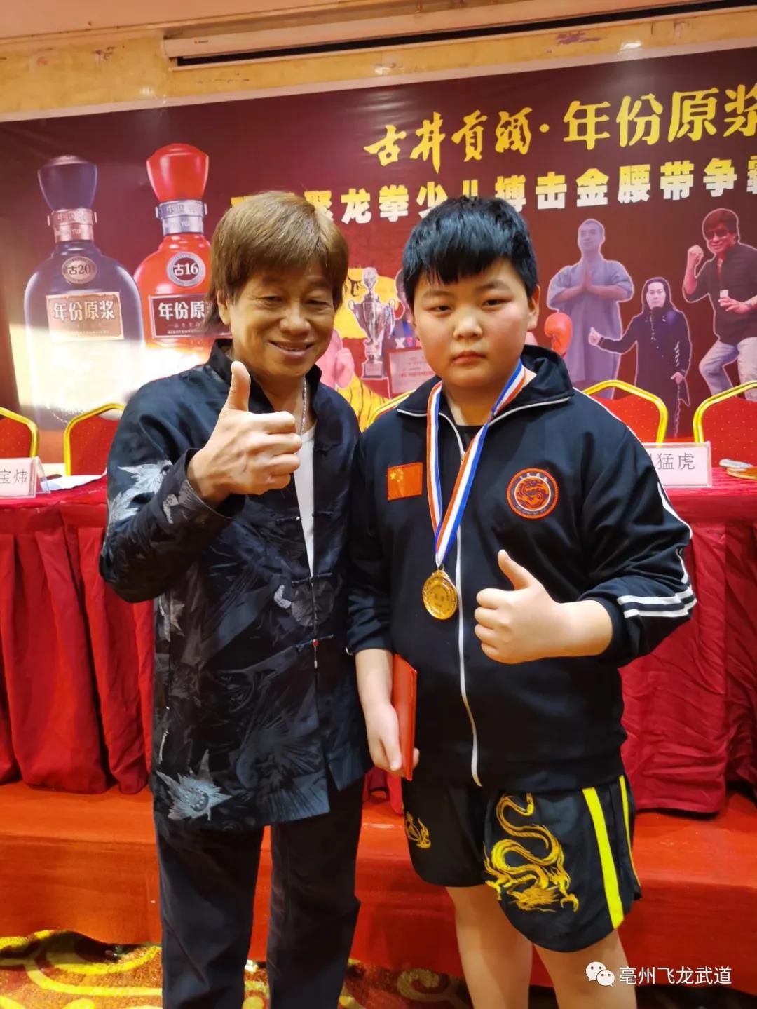 2020年聚龙拳少儿搏击争霸赛在安徽萧县圆满结束,亳州飞龙武道代表队大获全胜,获得四枚金牌的好成绩。飞龙武道师生和功夫影星梁小龙师傅合影留念。